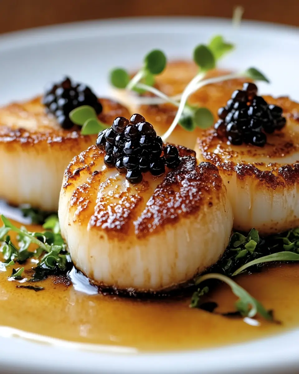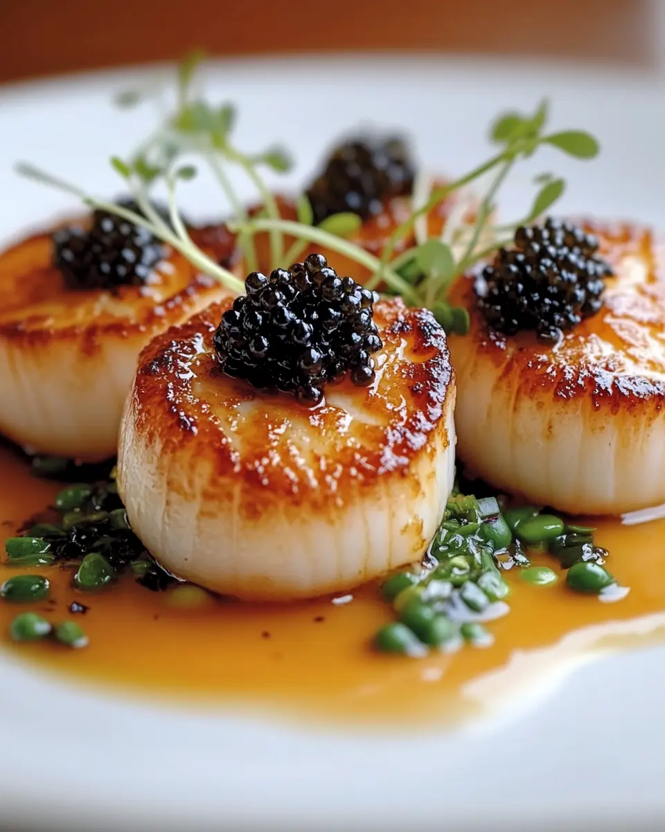 Using high-quality caviar enhances the dish significantly. Look for types like Beluga or Osetra for their rich flavor and texture, which complement the buttery scallops beautifully.
