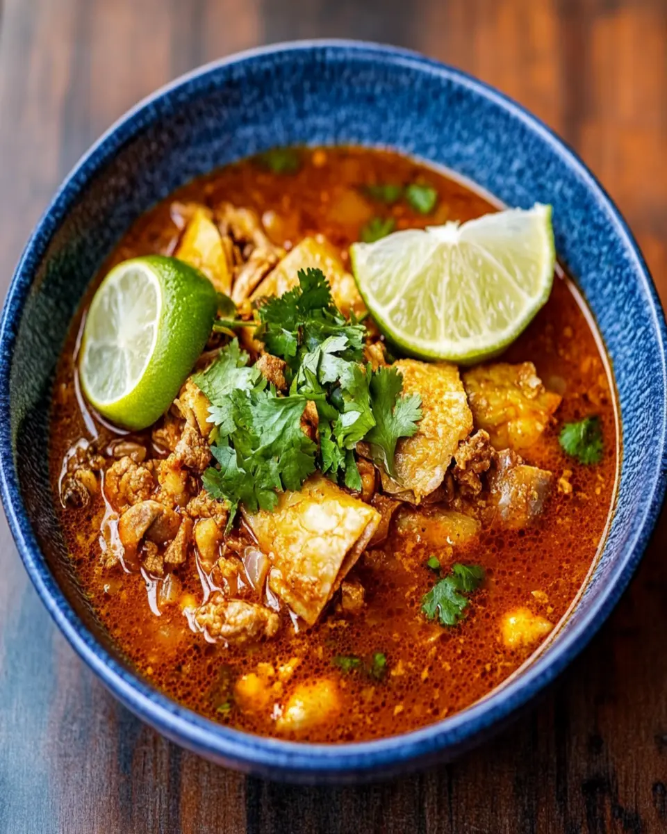 For a vegetarian twist, replace the beef broth with vegetable broth and omit the tripe. You can boost the protein content by adding beans or lentils. This version maintains the comforting essence of the original recipe while catering to plant-based diets.