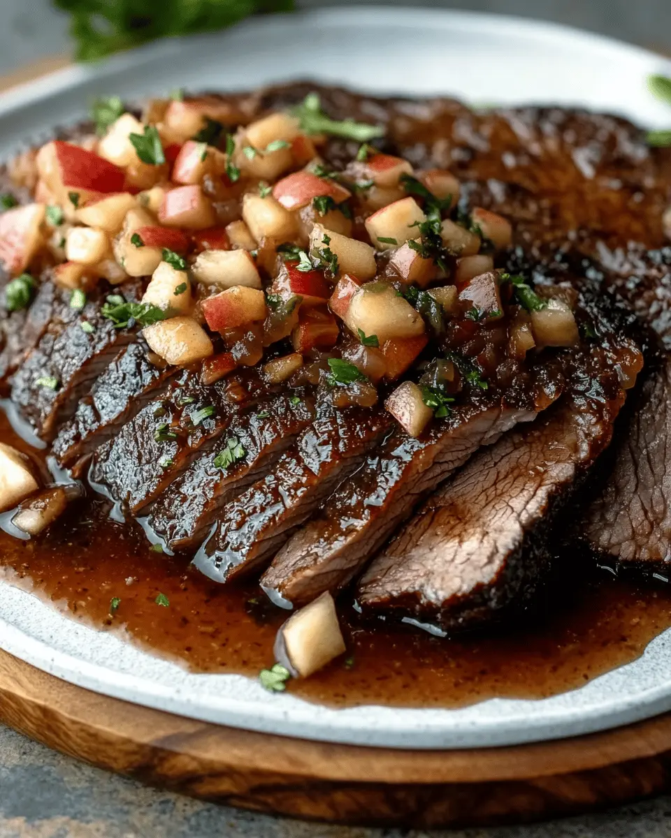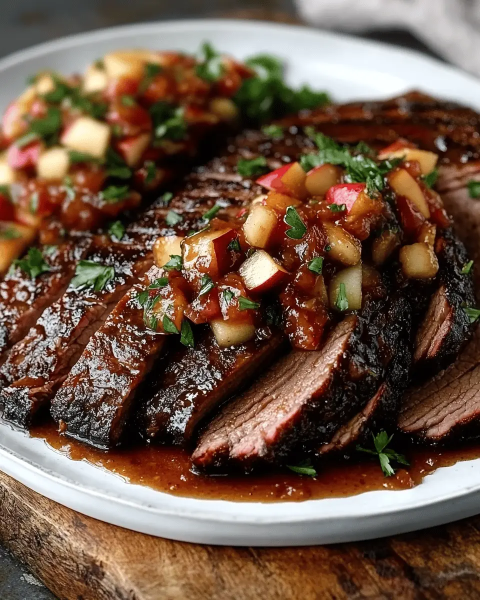 In summary, the Smoky Maple Beef Brisket with Apple Relish is not just a meal; it’s an experience that brings warmth and joy to any gathering. The tender brisket, infused with smoky and sweet flavors, paired with the freshness of the apple relish, creates a delightful balance that is sure to impress. Whether you’re cooking for a special occasion or simply enjoying a weekend feast, this recipe is a fantastic choice that is both satisfying and rewarding. Don’t forget to share your cooking adventures with friends and family, and enjoy every delicious bite!