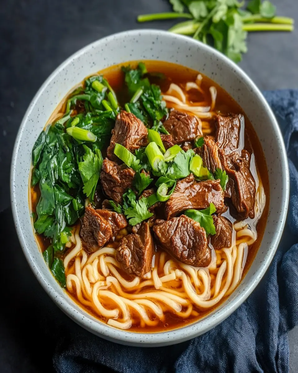 When serving, don’t forget to garnish your soup with freshly chopped green onions. This not only adds a pop of color but also a refreshing crunch that complements the tender beef and rich broth. Additionally, you can serve the soup with pickled mustard greens on the side for an extra zing that enhances the overall experience.