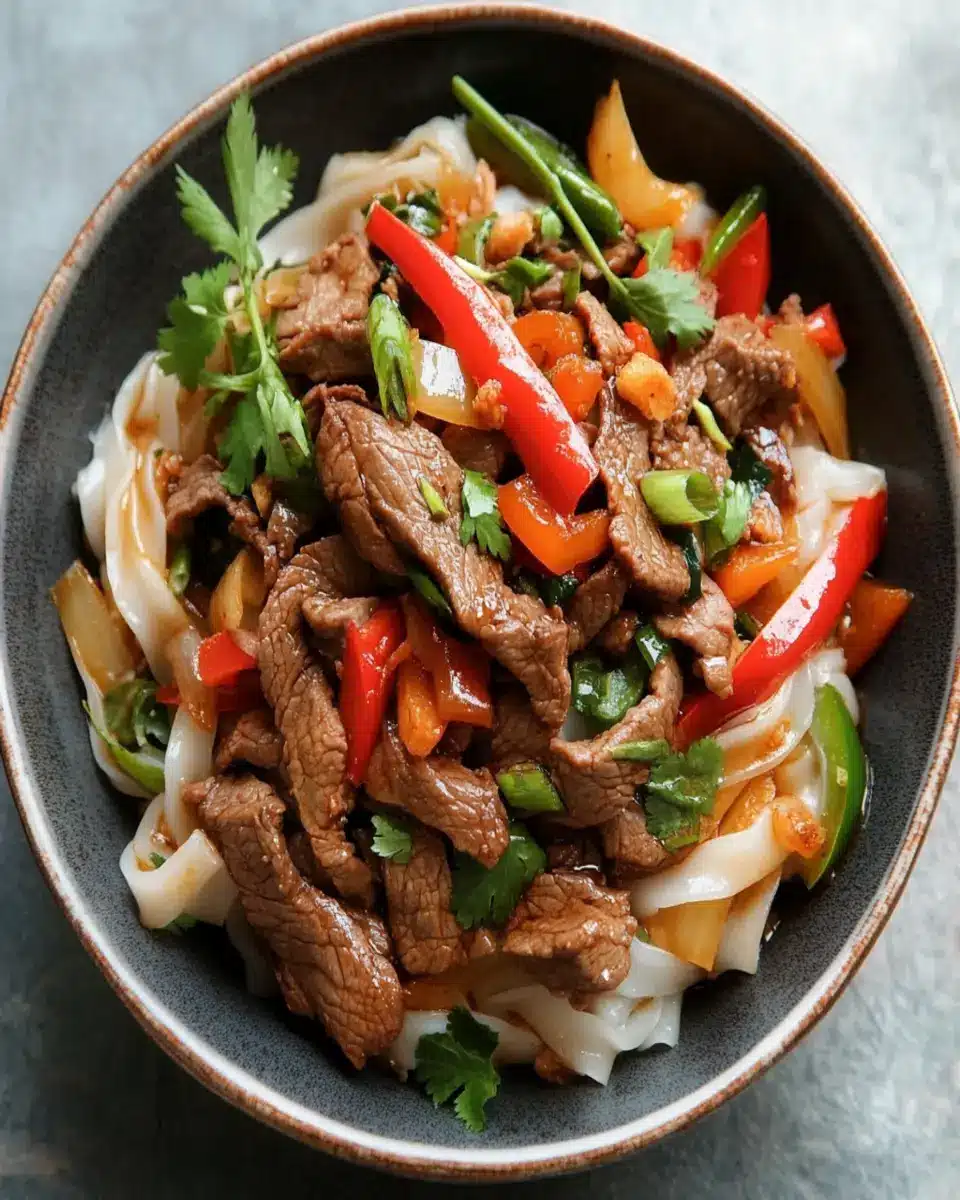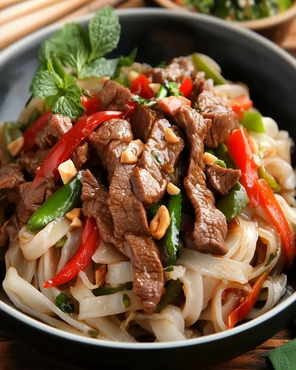 Imagine serving a plate of these delicious stir-fried noodles to friends or family; the colorful presentation and enticing aroma will surely impress. Plus, the combination of tender beef, crisp vegetables, and wide rice noodles makes for a wholesome meal that keeps you satisfied without feeling heavy. This dish is more than just a meal; it’s an experience that invites you to explore the wonders of Thai cooking right in your own home.
