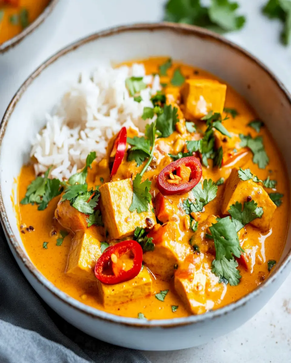 Whether you’re a seasoned cook or a novice in the kitchen, this recipe is approachable and forgiving, allowing for creativity and personal touches. It’s an ideal choice for those seeking to impress friends or family with a homemade meal that doesn’t require hours of preparation. Plus, it’s easily customizable—feel free to add your favorite vegetables or adjust the spice level to suit your palate. Enjoying this Tofu and Sweet Potato Peanut Butter Curry is more than just a meal; it’s an experience, a moment to savor and share.