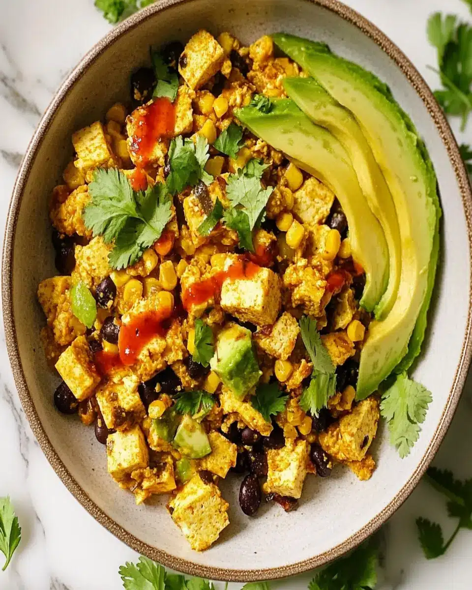 Serve the tofu scramble over a bed of quinoa or brown rice for a filling and nutritious bowl. Top it with additional fresh cilantro and a squeeze of lime for an extra burst of flavor. This variation turns your scramble into a wholesome lunch or dinner option, ensuring you get a balanced meal.