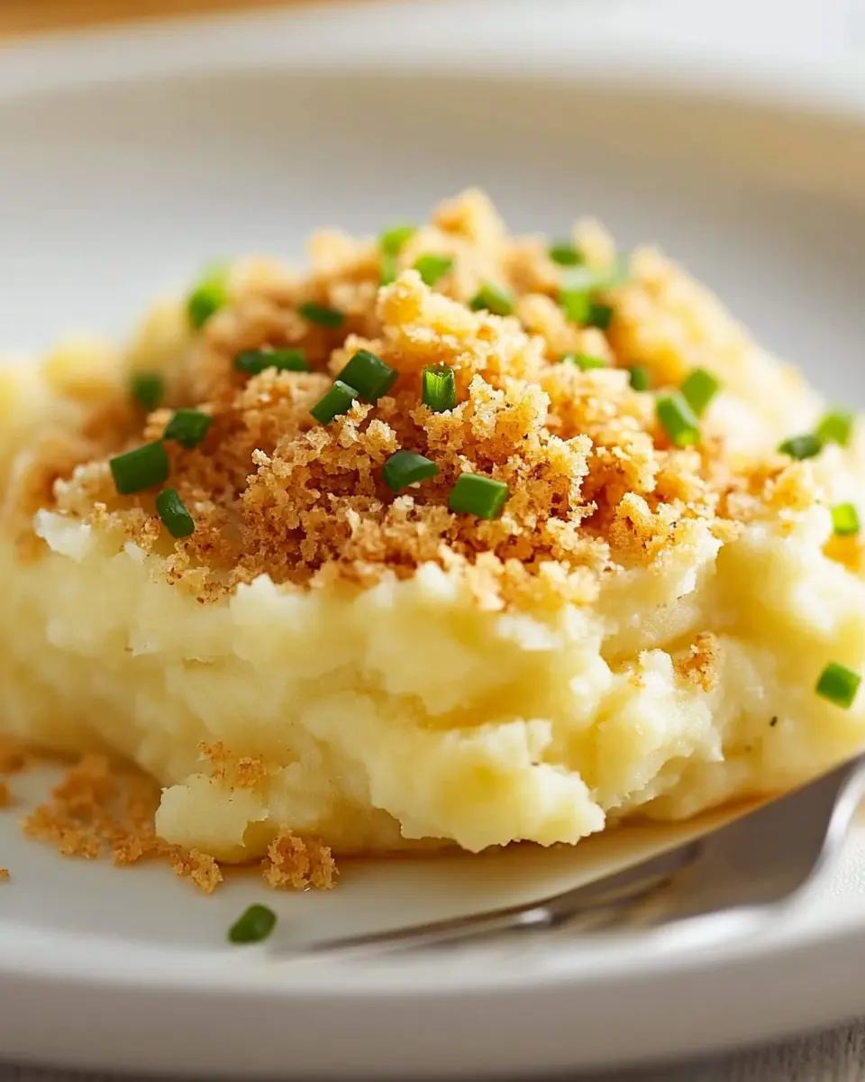 A creamy and flavorful mashed potato dish with a kick of horseradish and a crispy breadcrumb topping.