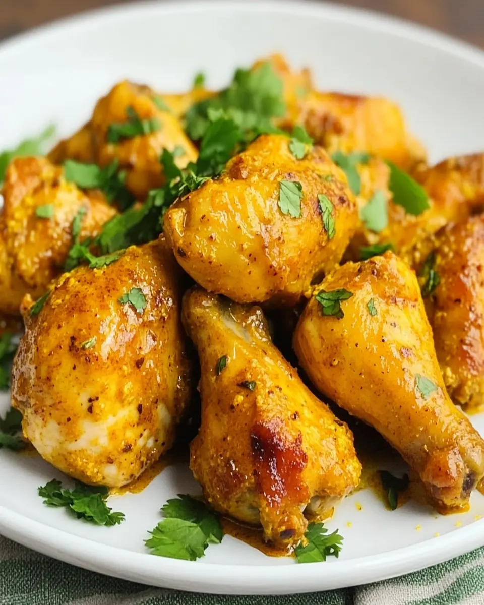 Turmeric is the star of the show, imparting a warm, earthy flavor and a stunning golden color to the chicken. Known for its anti-inflammatory properties, it also enhances the nutritional profile of the dish.