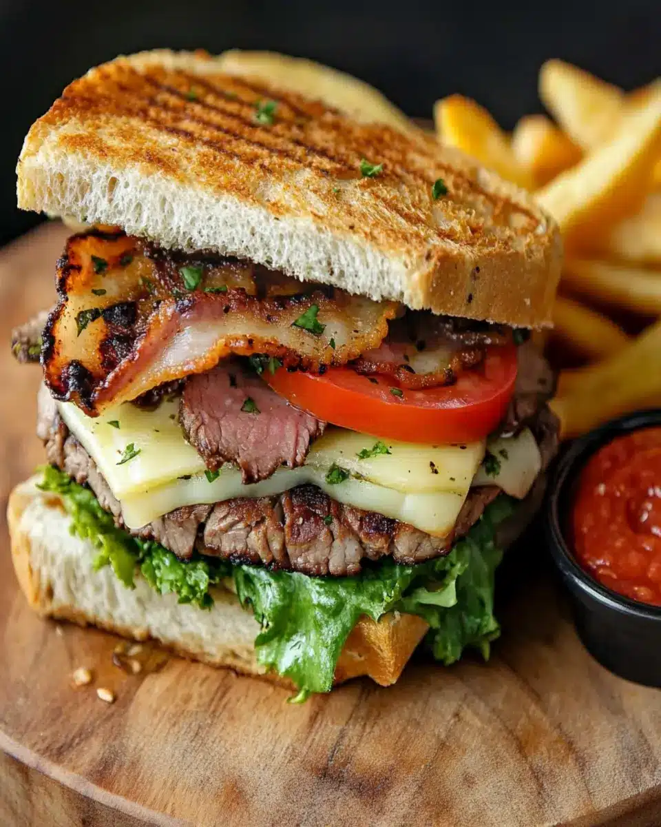 To complete your meal, pair the sandwich with a chilled glass of red wine or a craft beer. The rich flavors of the steak harmonize well with a bold Malbec or a hoppy IPA. If you prefer non-alcoholic options, a zesty lemonade or iced tea can also be a delightful pairing.